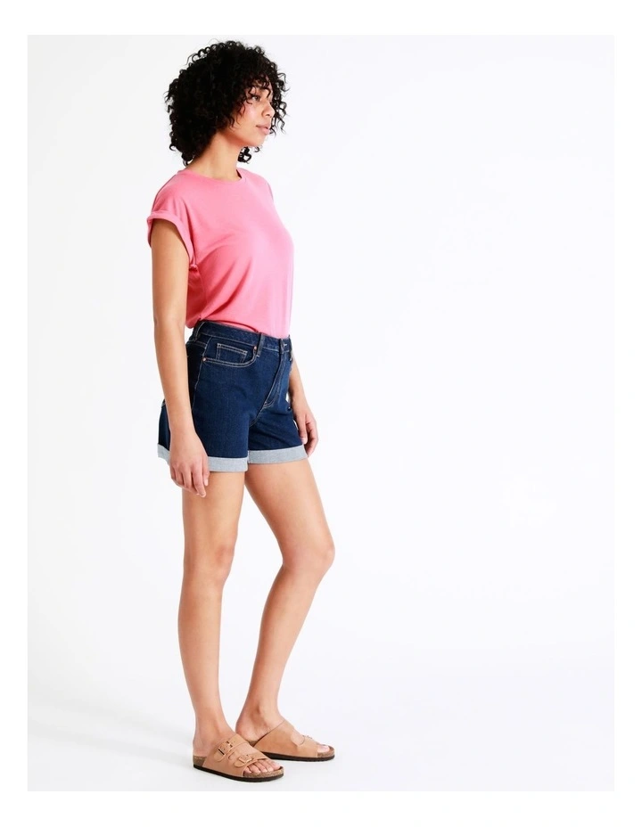 Grab Denim Recycled Blend Cuffed Denim Short in Empire Blue