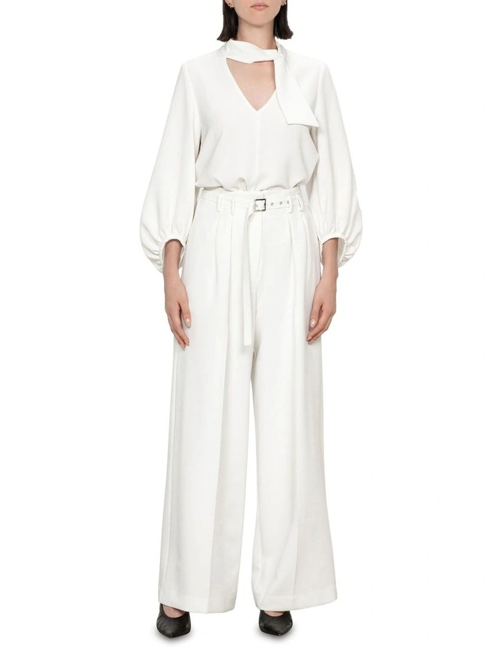 Offering a soft recycled crepe fabric and a classic silhouette, these tailored pants are a versatile piece to add to your transeasonal wardrobe. Pleat detailing at the waist creates subtle structure, while an accompanying self-belt with buckle fastening completes the look. Wear with a drapey blouse and finish with leather pumps.
