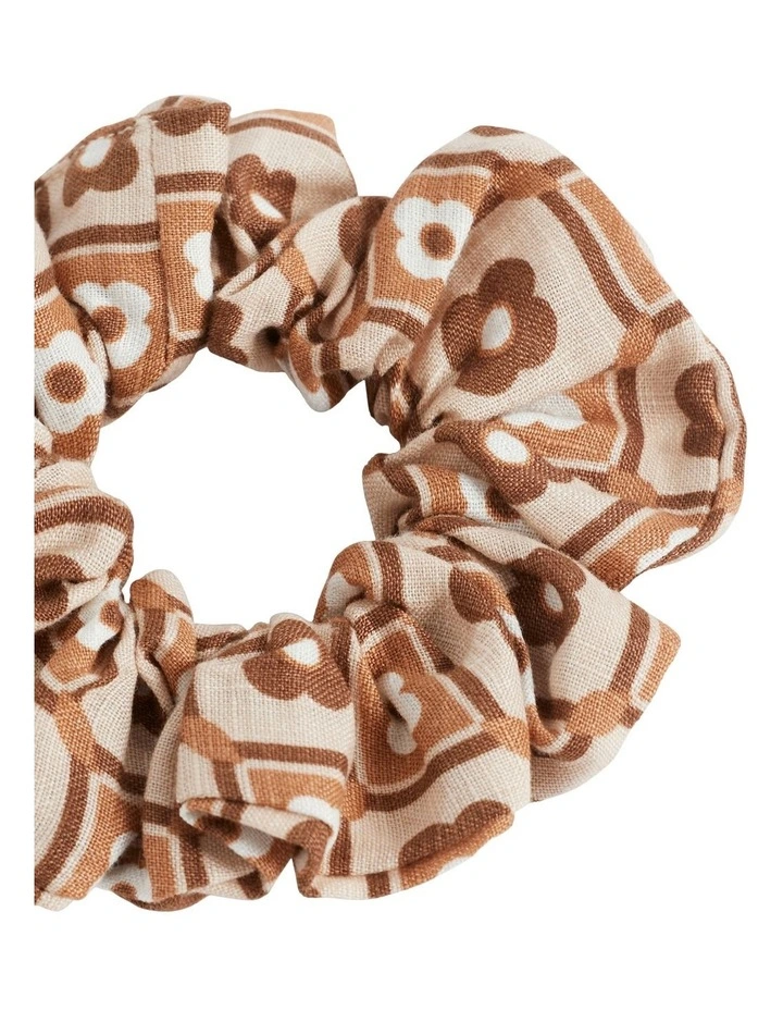 Finish your summer looks with this linen scrunchie, featuring our favourite retro print.
