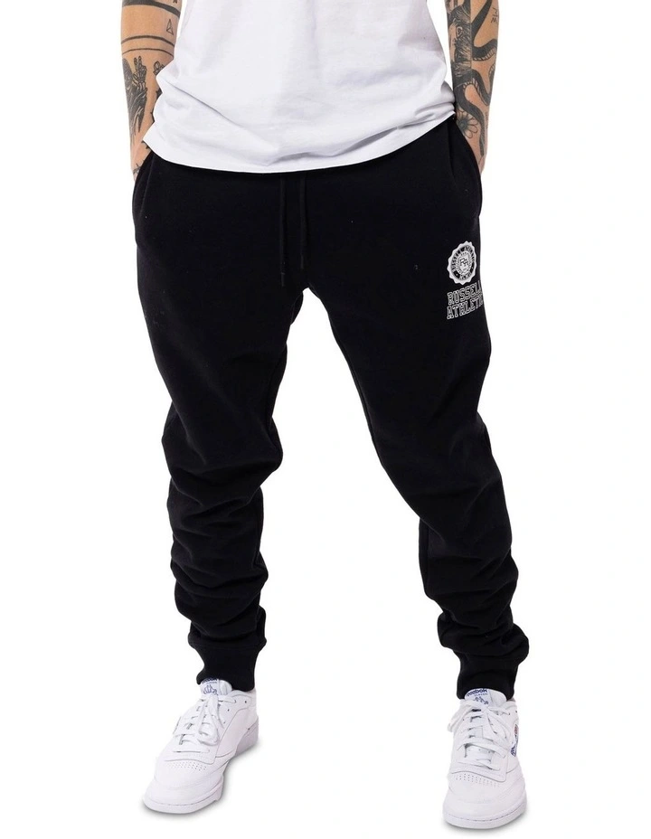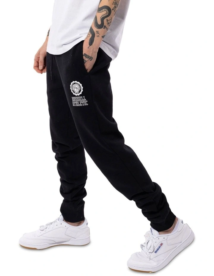 These Men’s Collegiate Flock Track Pant in black are perfect all day, every day! With super soft cotton these track pants provide the perfect level of warmth and comfort! Featuring a regular fit, elasticized ribbed waistband/rib cuffs and a contrast Russell Athletic Collegiate logo on the wearers leg.