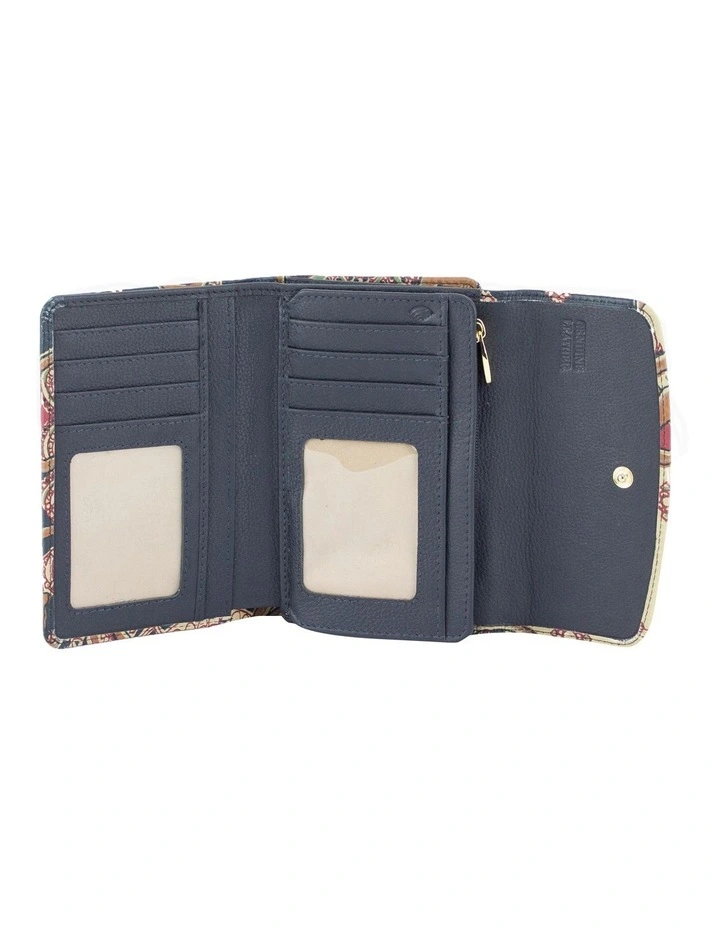 Scala Sarah French Purse in Tuscany. Gold hardware. Snap closure. Internal 4 display windows with 13 credit card slots and 2 slip pockets.Â