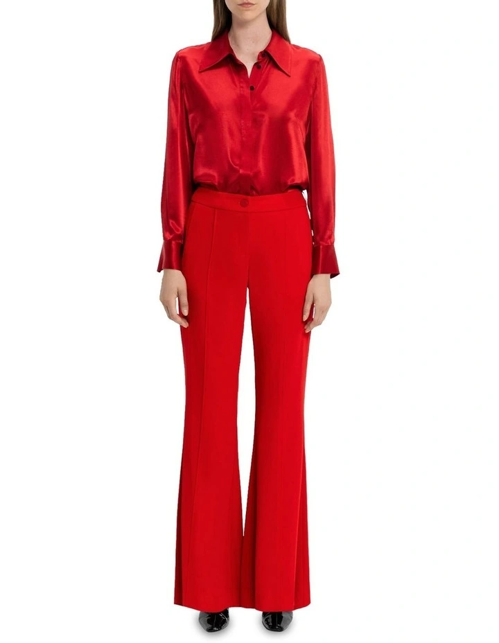 Crafted from 100% recycled polyester twill, this modern pant will add a pop of colour to your wardrobe. Featuring a wide leg silhouette and side seam pockets. Pair back with a polished knit or matching Scarlet Jacket for a bold feminine look.