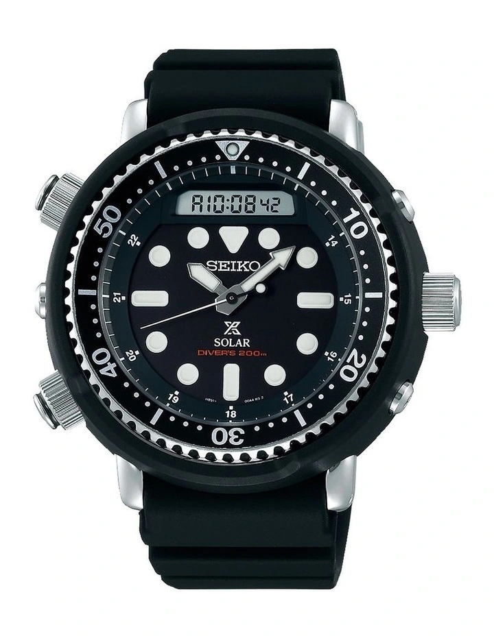 The SEIKO SNJ025P is from the Prospex collection, where each time piece comes from three dedicated categories, Air, Land and Sea. This particular reference is from the Sea series being a divers watch. This hybrid duo design that is powered by light with 200m Divers certified water resistance, making this time piece suitable for a wide range of activities. Dubbed the “Arnie” by our fans this recreation takes inspiration from the original cult classic piece from 1982.