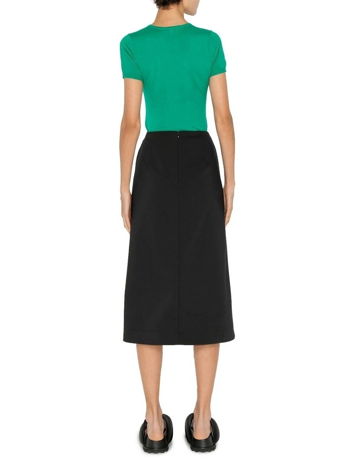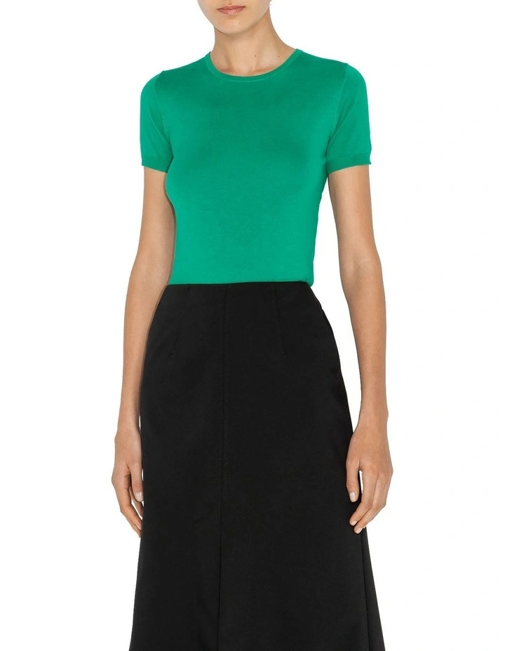 Made from a viscose blended yarn, add this soft staple to your transeasonal wardrobe. Designed with a round neckline and short sleeves. Style with everything from denim to leather. Made in China.