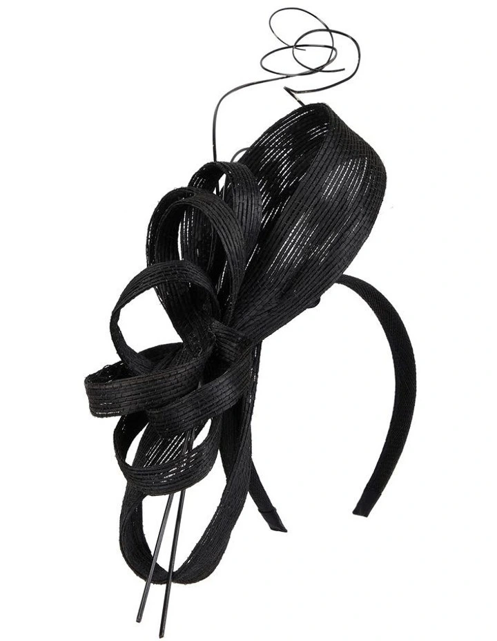 A textured wide side bow fascinator with curved quill look detail. A must have stylish addition to your race day look.Â