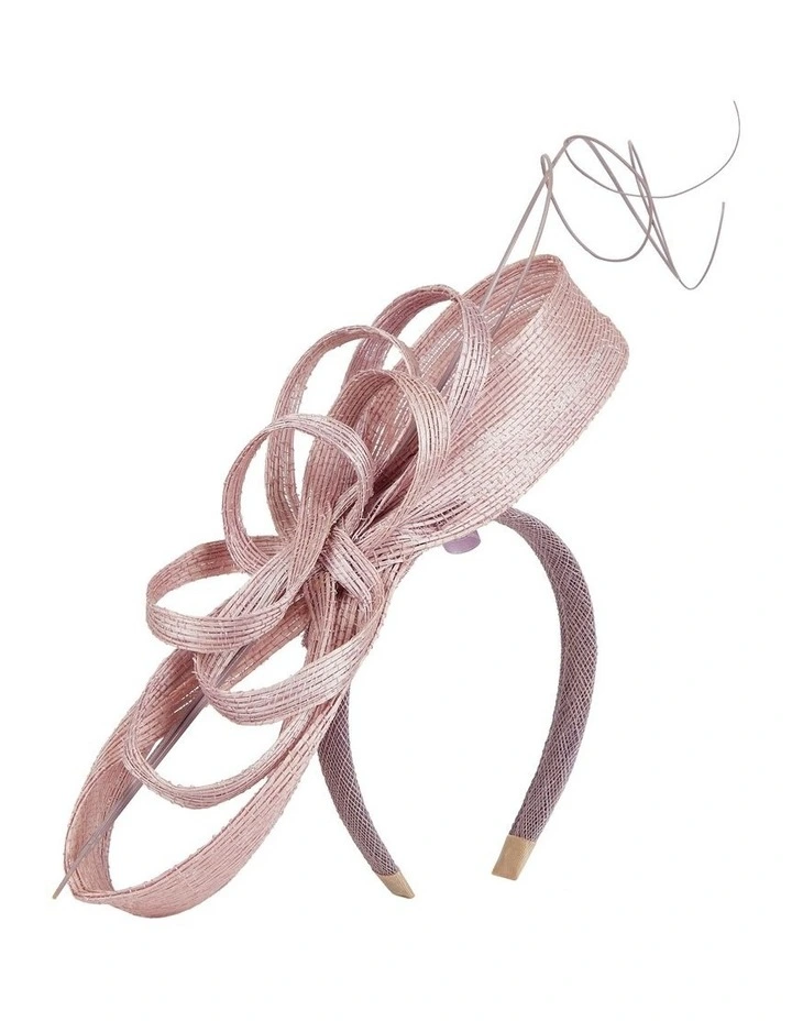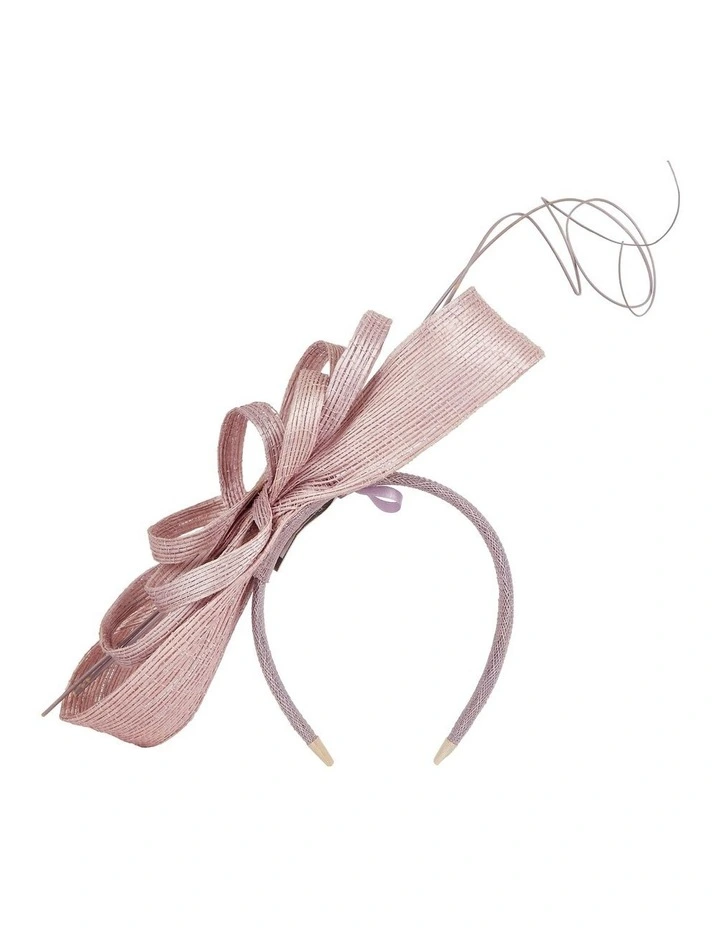 A textured wide side bow fascinator with curved quill look detail. A must have stylish addition to your race day look.