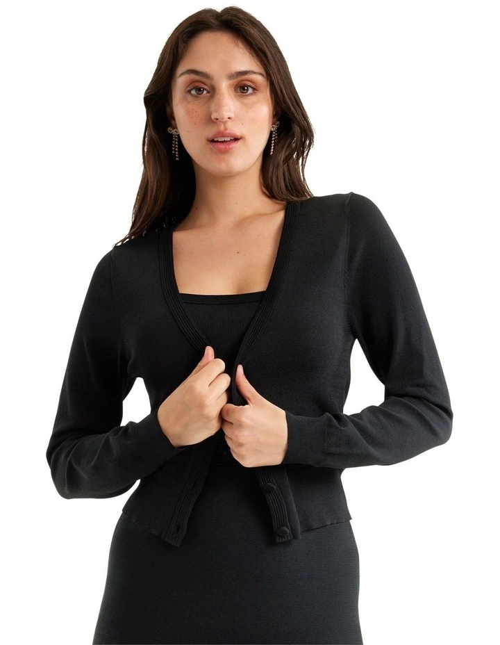 The Sienna Cardi is a stylish and versatile piece that is perfect for layering. Made from a blend of viscose and nylon, it features stretch throughout that ensures a comfortable and flattering fit. The cardigan is designed in a cropped length, making it perfect for pairing with high-waisted pants or skirts. The V-neckline and long sleeves give it a polished look while the front button closure adds a touch of elegance. The ribbed cuffs and hem add a touch of texture and also help to keep the heat in. This cardigan is perfect for layering over a shirt or under a coat, it will keep you warm and looking stylish on a chilly day. The versatile design of this cardigan allows it to be dressed up or down, making it perfect for any occasion.