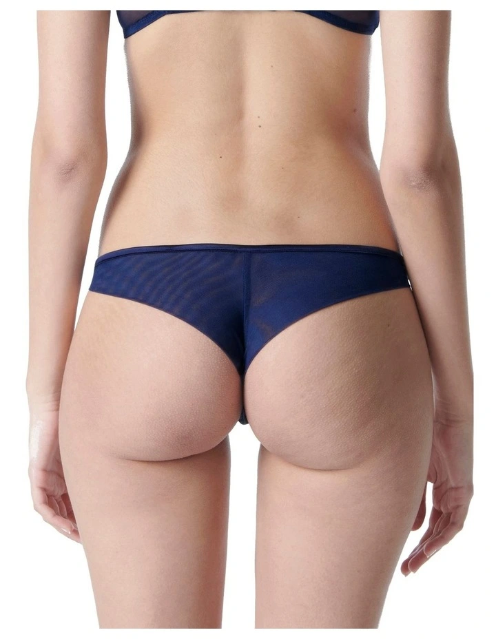 Sheer and lavished in floral embroidery, the Elsa Tanga, by Simone Perele, is a barely-there design that’s as comfortable as it is refined. Adorned with a lace embroidery trim and a fishnet-like tulle triangle detail at the back, this is minimum coverage with maximum effect. With an elastic band that sits gently against the waist, it sits discretely under outfits of all styles.