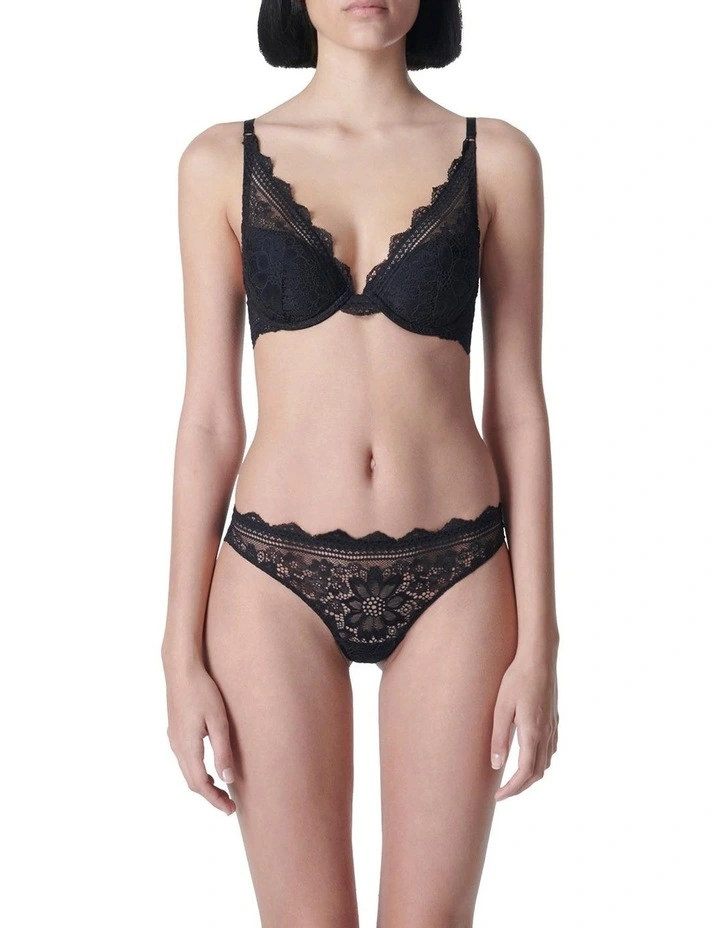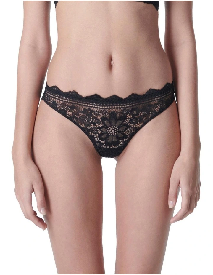 The Freesia Tanga by Simone Perele is designed for minimal coverage and is constructed from comfortable stretch lace featuring sheer floral detail. Its high-cut for seamless wear under clothing and perfect as a discretely decorative piece whenever the occasion arises.