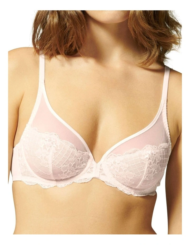 The Reve Plunging Underwired Bra, by Simone Perele, is made from an elegant combination of lined lace and sheer tulle. A triangle shape creates a plunging, satin-trimmed neckline that complements the Japanese cherry blossom and graphic check print for everyday wear with an elegant feel.Â