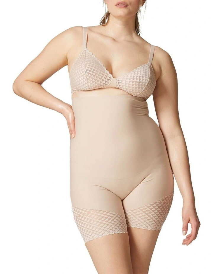 The Subtile High Waist Shaper Shorts, by Simone Perele, are crafted with responsive knitted fabric and French lace for a body-shaping effect. Seamlessly flatten your tummy, smooth your hips and sculpt your derriere in these lace-detailed shorts, complete with silicone inner-stripping to prevent slipping.