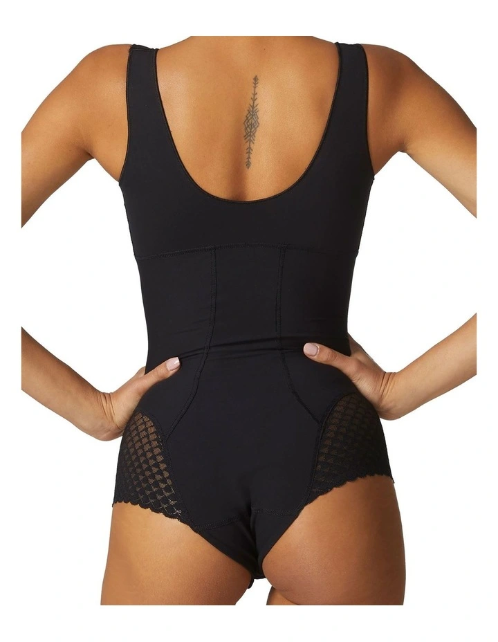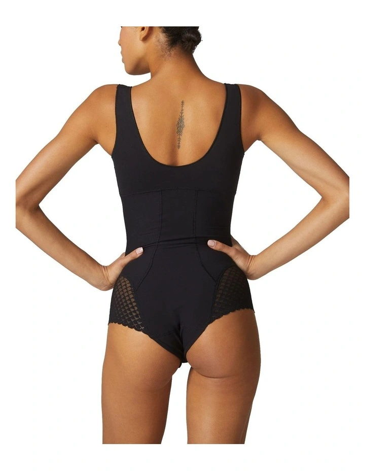 The Subtile Shaper Bodysuit, by Simone Perele, hugs and defines with control mesh, responsive knitted fabric and scalloped French lace edging at the bottom. Sculpting, slimming and seamless lingerie.