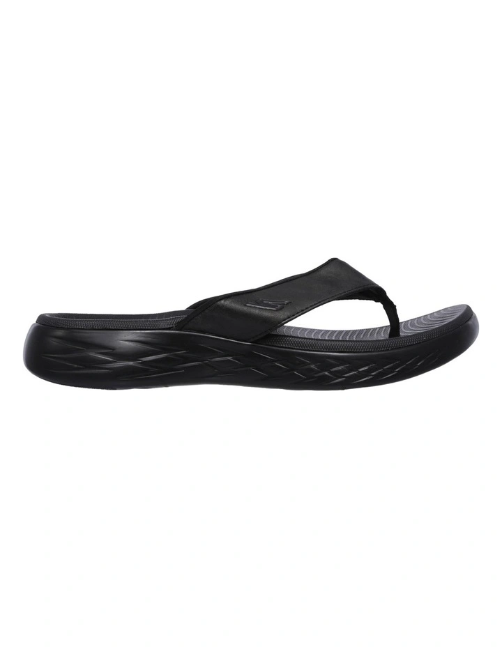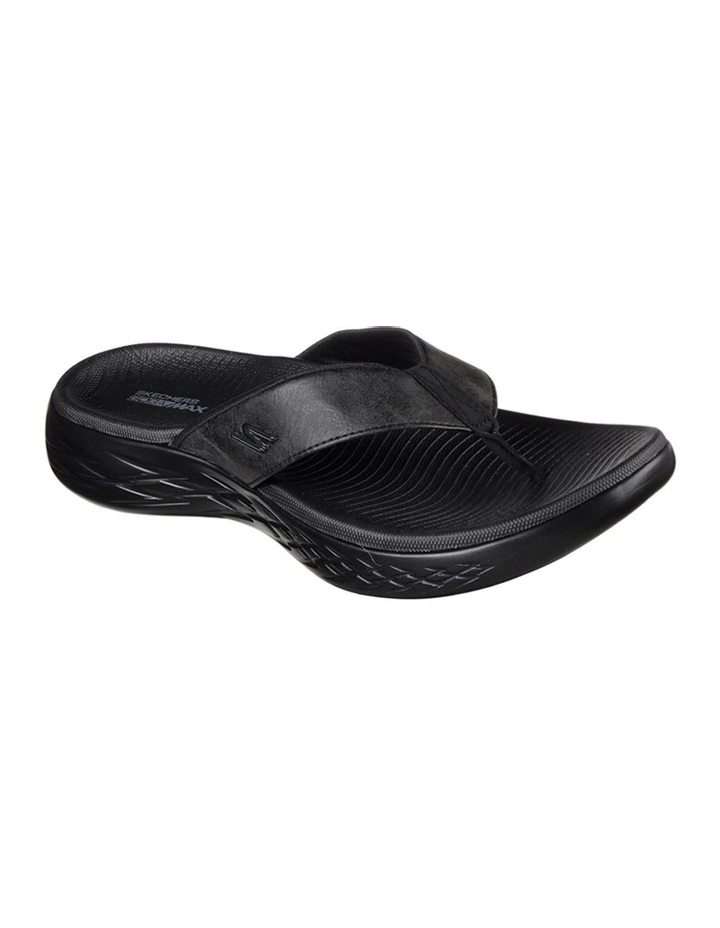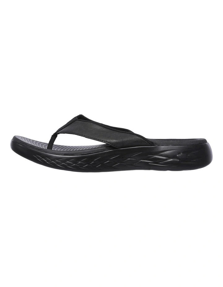 Spend the summer in style and long-lasting comfort with the Skechers On the GO 600 – Seaport sandal. Smooth Perform-Tex leather-look fabric upper in a sporty casual comfort 3 point thong sandal with contoured Goga Max Contour Footbed and Skechers GOrun 600 design sole.