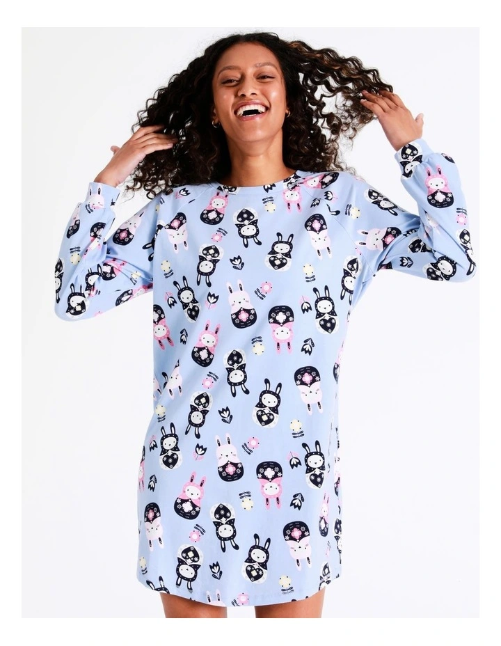 Soho Celia Novelty Long Sleeve Nightie Babushka Bunny in Blue