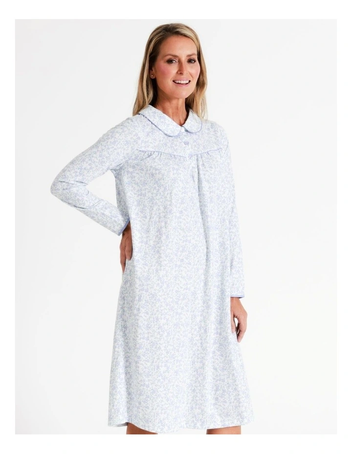 Soho Timeless Aubrey Midi Peter Pan Collar Long Sleeve Nightie in White Floral