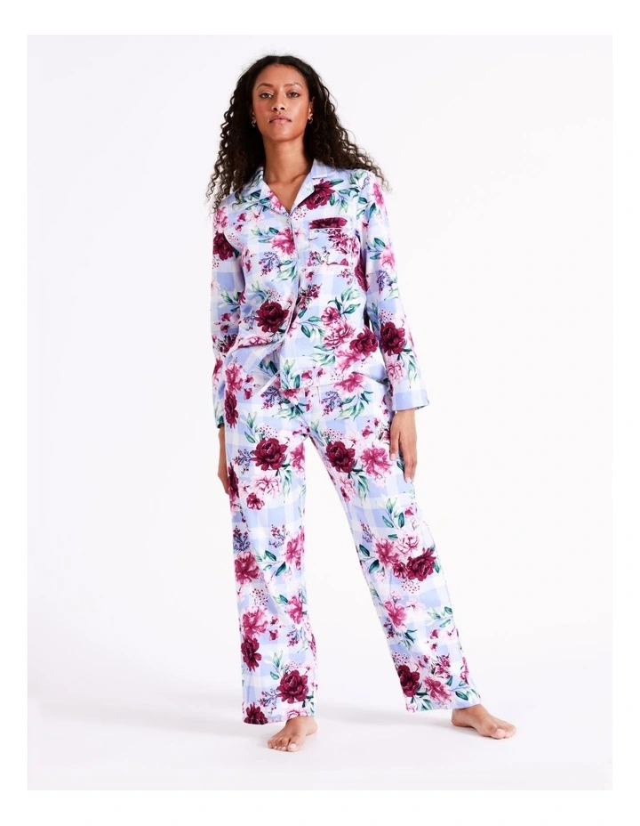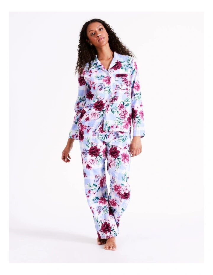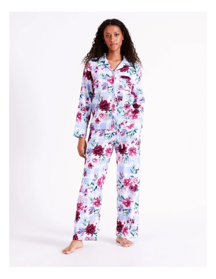 Soho Twill Flannelette Pyjama Set in Blue Floral