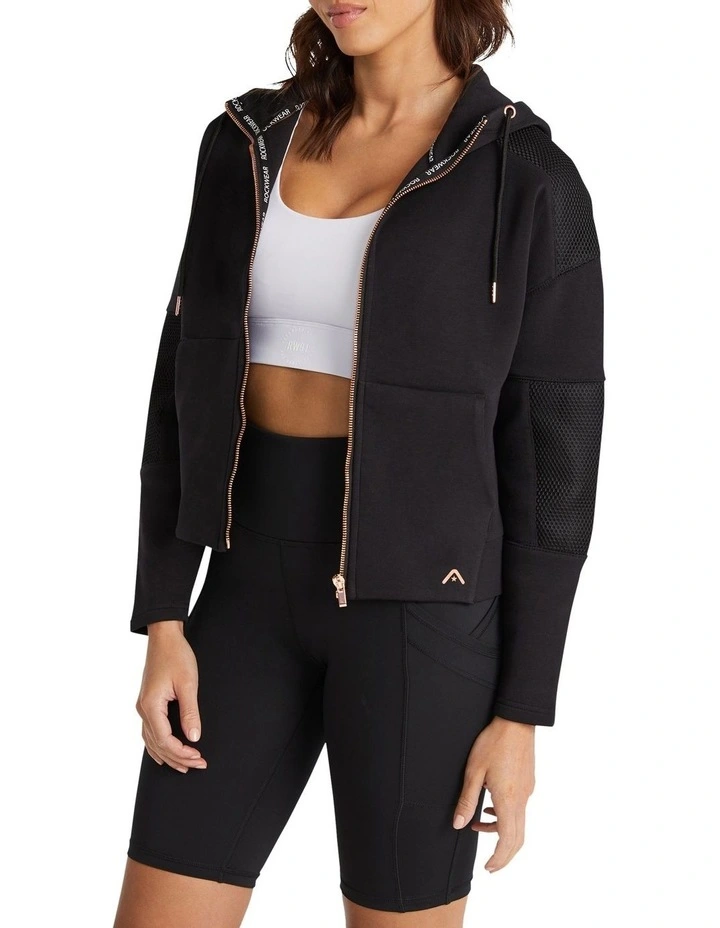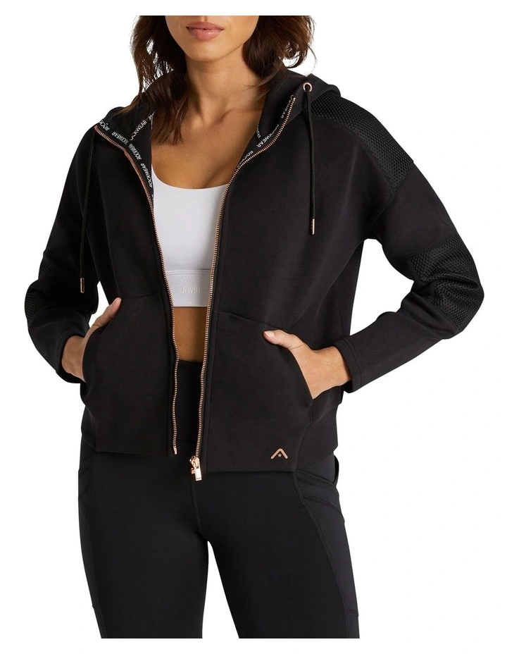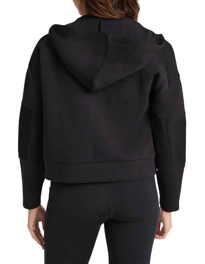 Step out in style in the Spacer Mesh Panel Jacket. Perfect for working out to running errands, this piece has a full zip to keep you warm and secure. With a hood and pockets for your essentials, it’s as practical as it is stylish. The relaxed fit gives you the freedom of movement you need to stay comfortable and perform at your very best. The sleek solid color with mesh panels make it an easy choice.