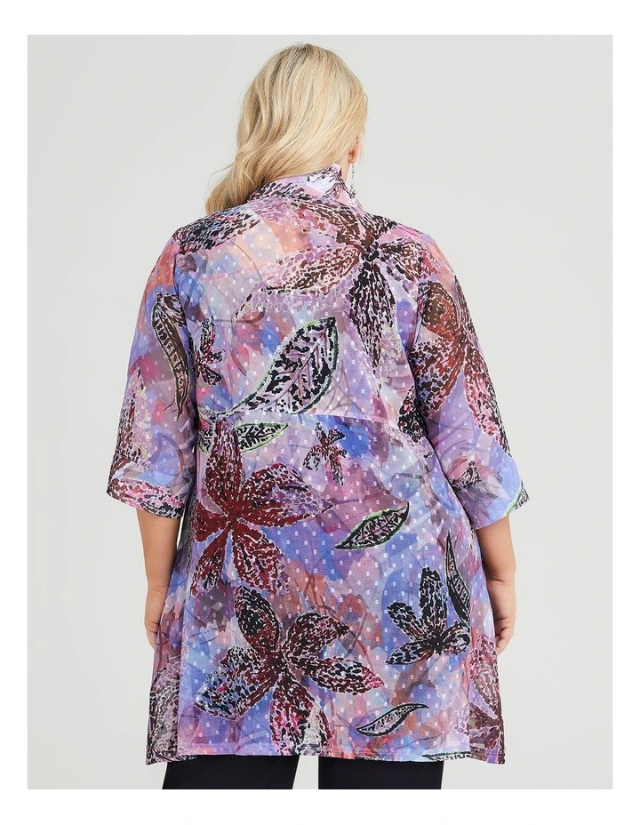 Looking for a lightweight showstopper to pack for some travels? The Spot Chiffon Cardigan from the TS plus size collection will become your summer go-to when you need ease and wow at the same time. Spot chiffon luxe with a floral print and edge-to-edge stitched pockets create a dramatic effect on this long plus size cardigan. Measures: 95cm long from centre back neck to hemline on a size 14.
