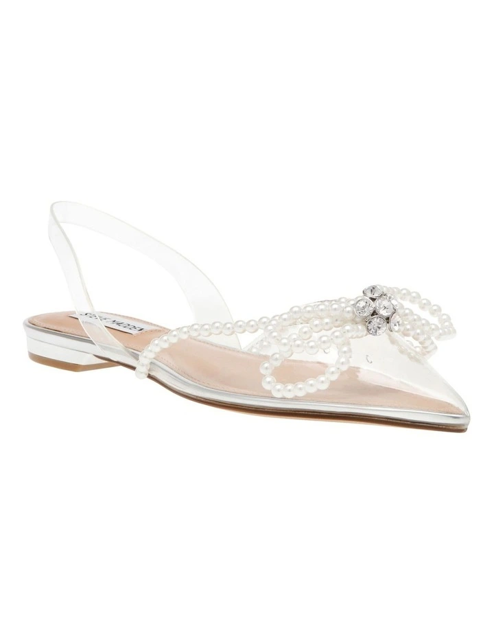 Embrace your fun and flirty side when you’re dressed in Steve Madden’s JUSTI-P flats. The perfect mix of casual style and elegant flair, these clear slip-on shoes are dressed up with pearl detailing and a pointed toe for all-day sophistication.