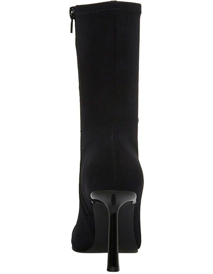 Its the VAKAY! a stretchy sock bootie with a dainty spark uplifted by a show-stopping stiletto heel. A pointed toe completes this feminine snapshot from Steve Madden, tying up an incredible nocturnal number perfectly matched with a black or white mini-dress.