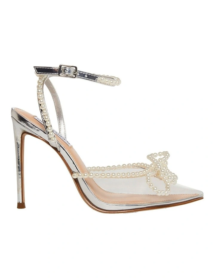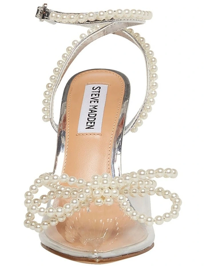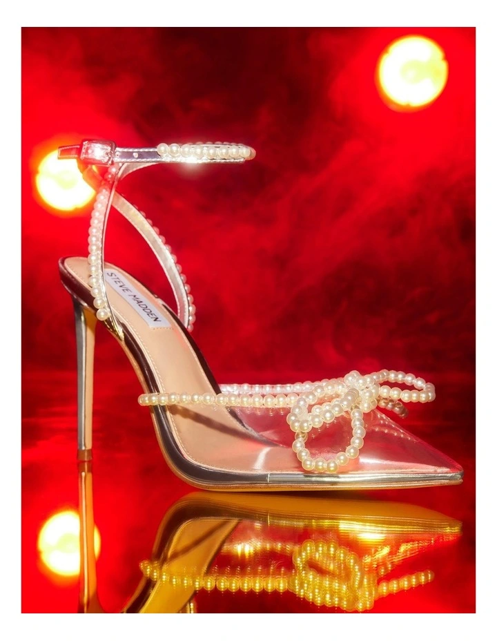 If you are a fan of subtle designs, then the Viable-P heeled shoe by Steve Madden is for you. Rhinestone encrusted bow twinkles against the clear background of these transparent stiletto heels topped with a silver ankle strap adding a fashionable zing to the look and appearing chic when teamed up right. Take your trendy outfit up a notch as it instantly adds to your ensemble and is a steal this season.