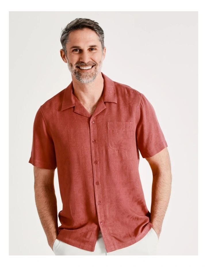 Reserve Stradbroke Short Sleeve Jacquard Shirt in Red