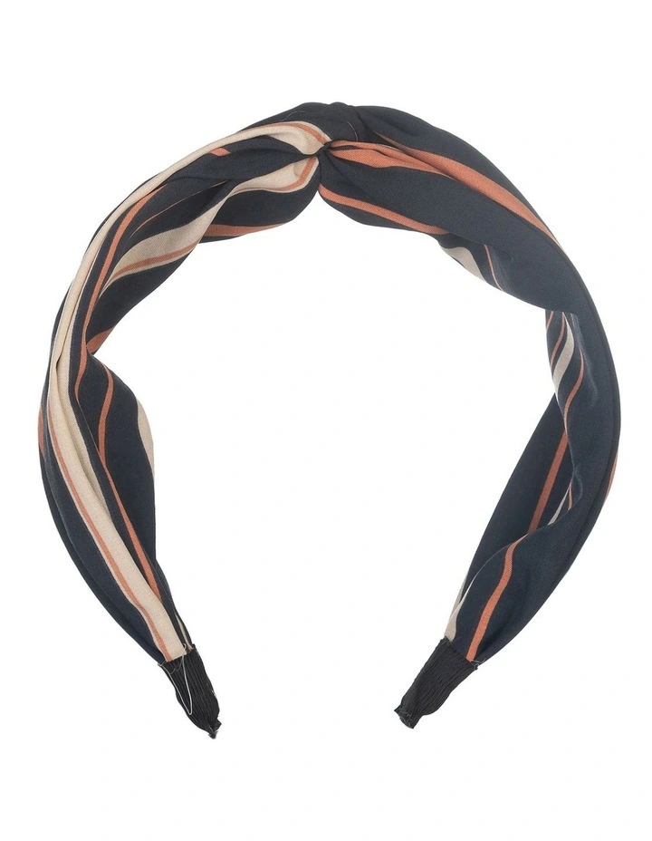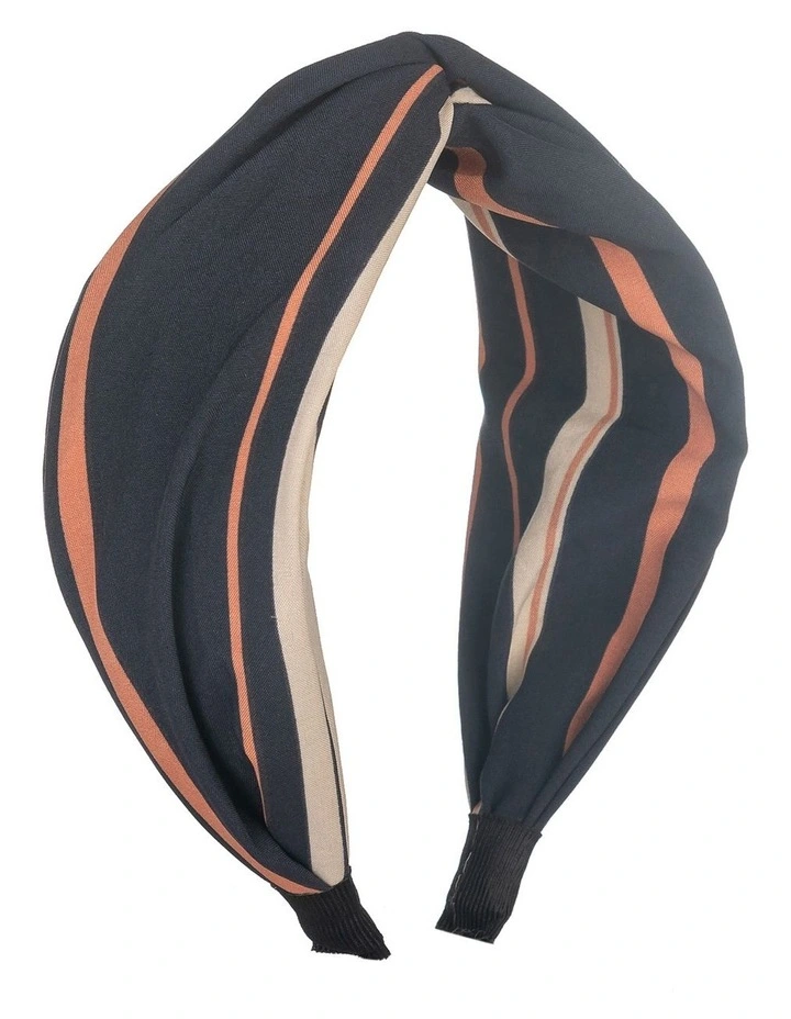 An easy to wear stripe turban style headband. A must have addition to your accessory wardrobe.