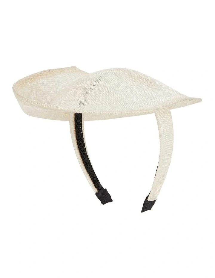 An east west style sculptured look sinamay fascinator with upturn edge.