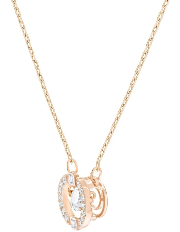 Featuring a new dancing crystal design concept, this rose gold-plated necklace showcases a round stone that floats inside a 3D cage in crystal pav. An essential addition to any jewelry box, it will give your daytime style a playful sparkle.