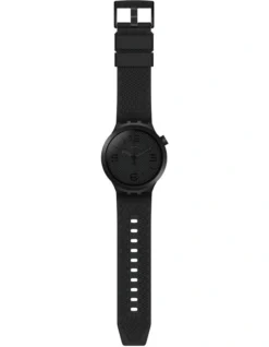 This transparent watch features a clear plastic case with a blue back print and a matching silicone strap. The clear dial is printed with white indexes and pops with red, blue and yellow hands.