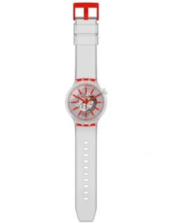 Swiss made, the Swatch watch ONCE AGAIN (GB743) features a quartz movement, a plastic strap and a plastic watch head.