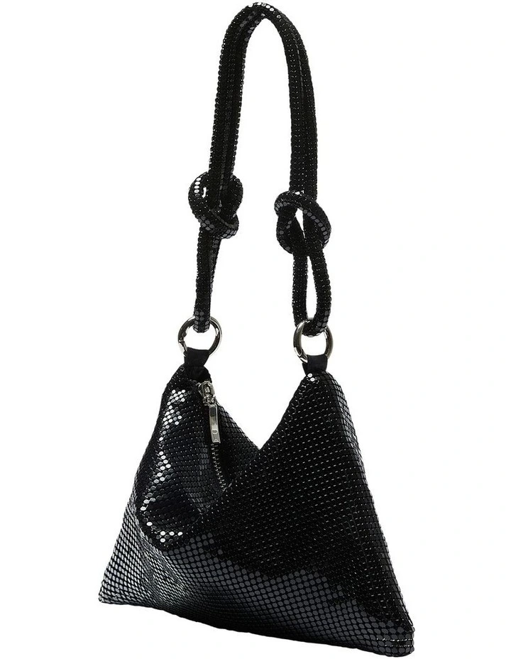 Covered with crystal mesh details, SWOON is the perfect party accessory. This shoulder bag features a main compartment with zip closure and double strap handle tied in distinct knots. Pair yours with any night-out fits to complete a showstopping look.