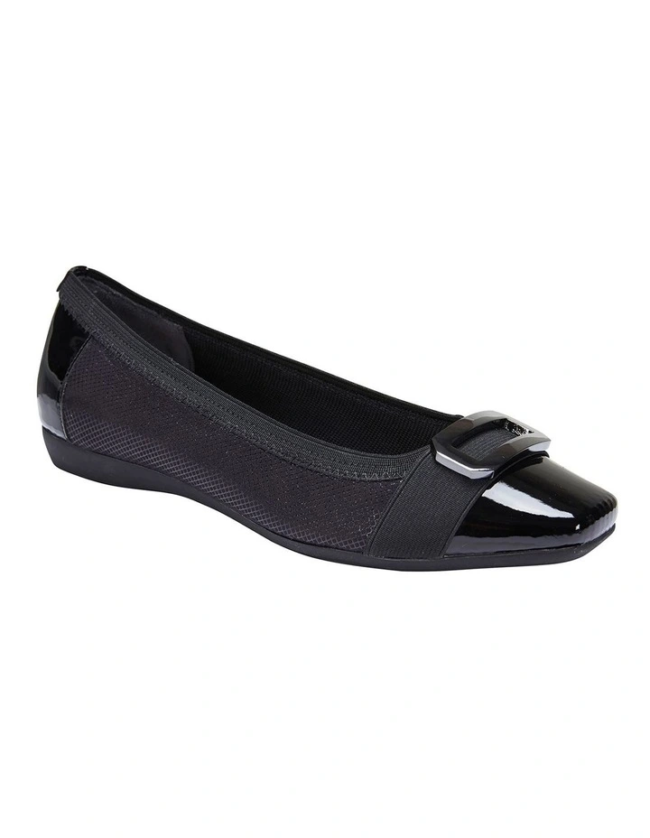 Tamsin Black Patent/Print Flat Shoes