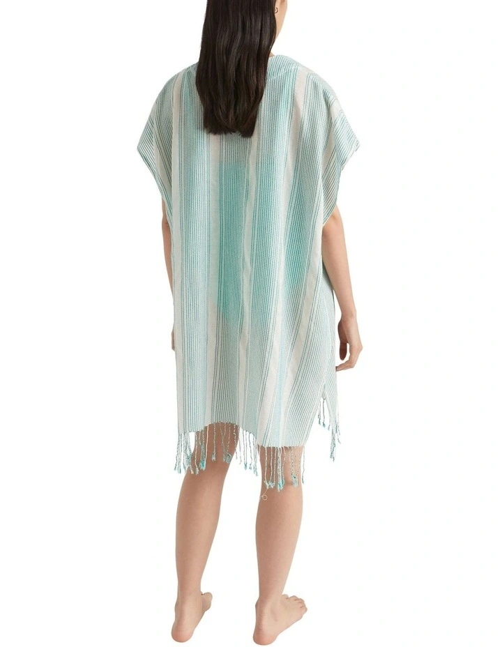 Crafted from a lightweight cotton linen blend, this kaftan is ideal for easy summer days at the pool or beach. With a V neck and a tassle hem, it has a loose, comfortable fit and features woven vertical stripes.