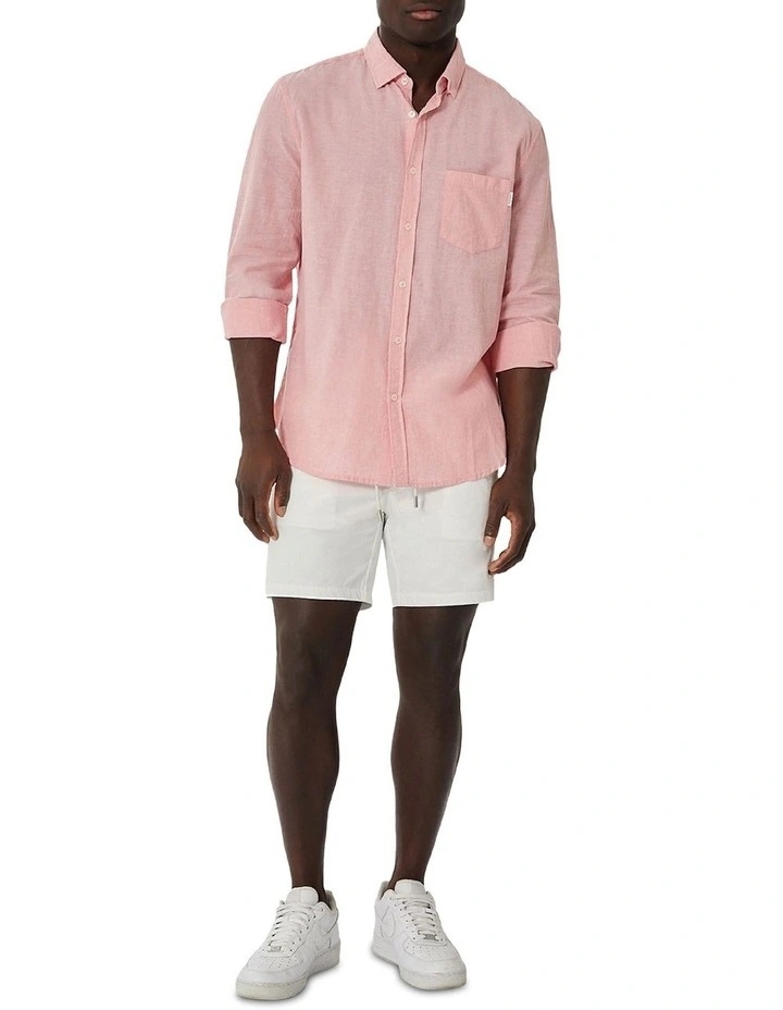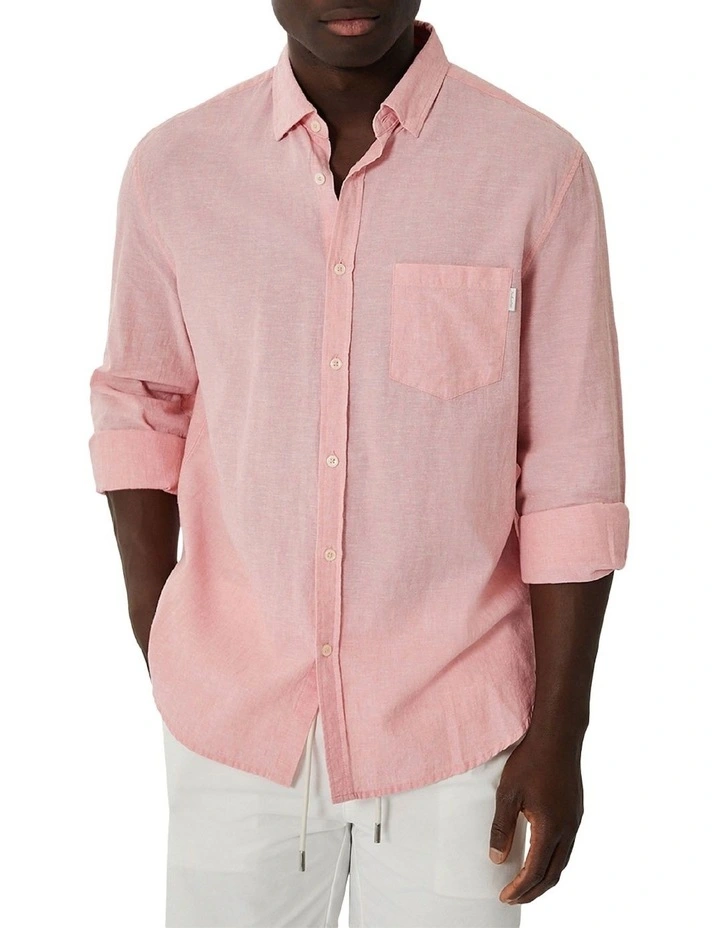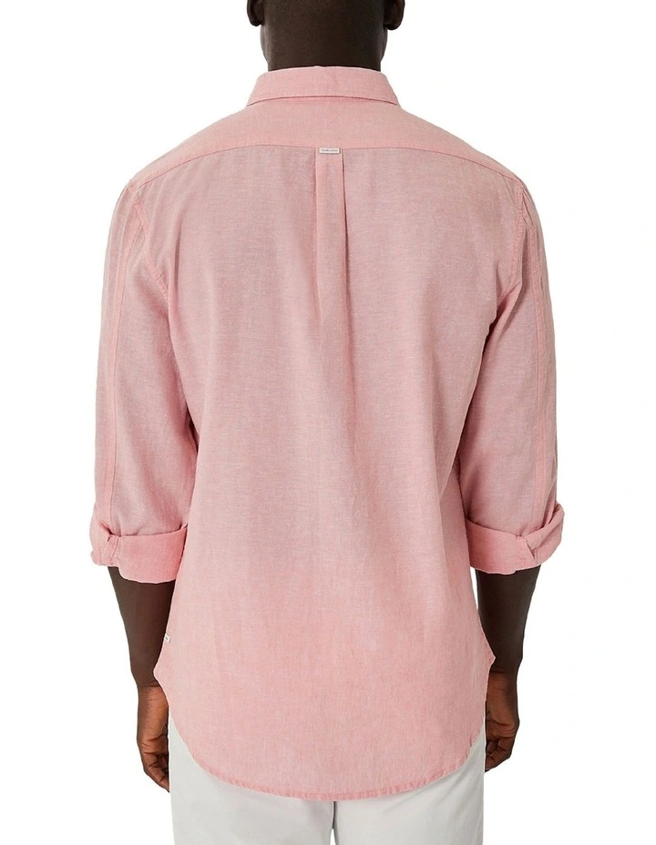 The Cammello Shirt is a lightweight linen shirt in a summer coral colour