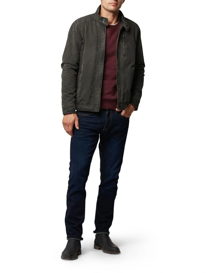 A clean-lined harrington jacket in a distressed shower-repellent canvas. A versatile and iconic style rooted in our outdoor heritage. The robust PU coated fabric is balanced with a straight cut and sleek zip pockets for a streamlined look.