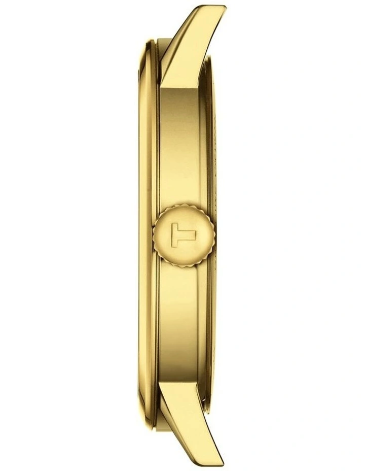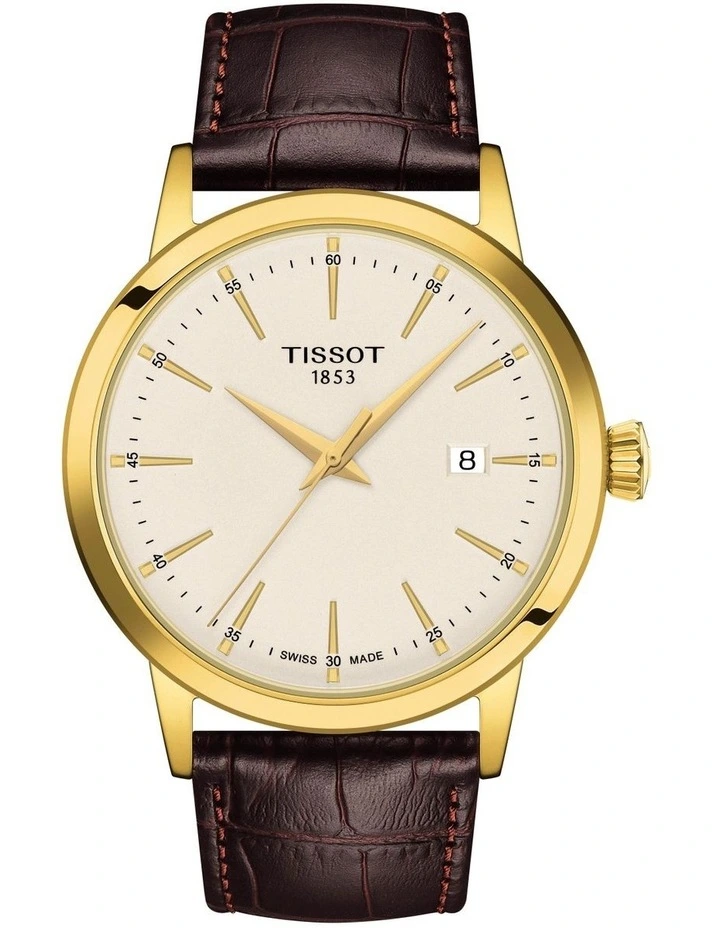 With its minimalistic design and classic look, the Tissot Classic Dream has a long-lasting appeal for all occasions. This men’s quartz watch has a scratch-resistant sapphire crystal, ivory dial and brown leather strap.