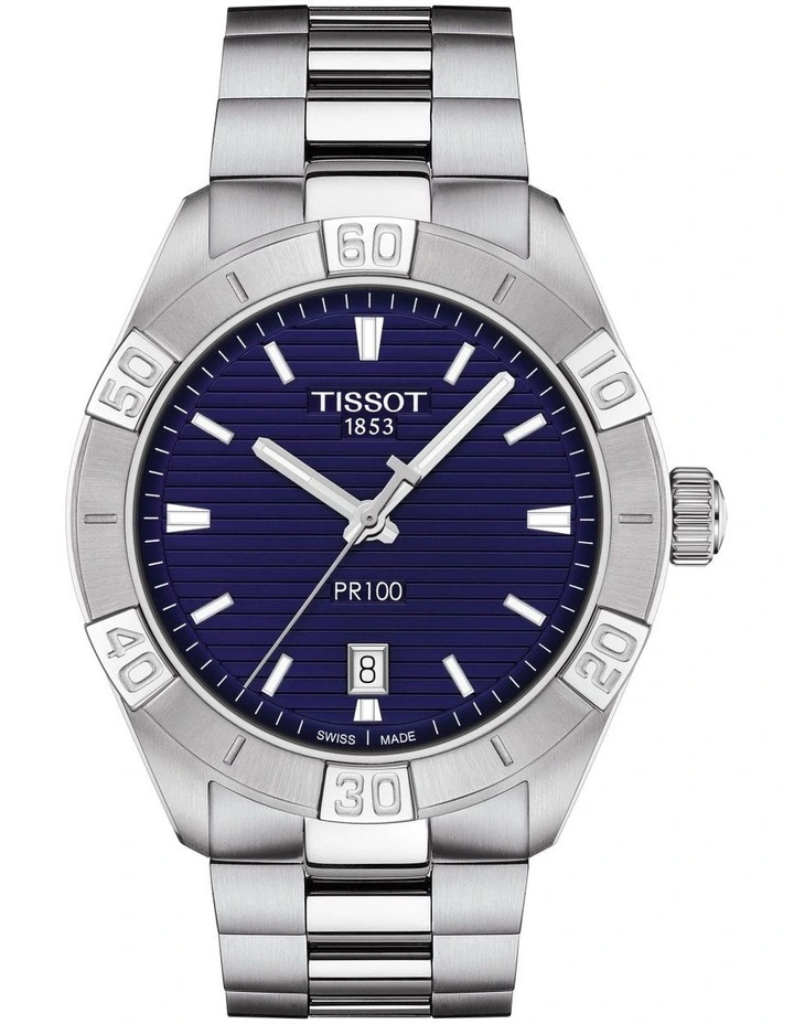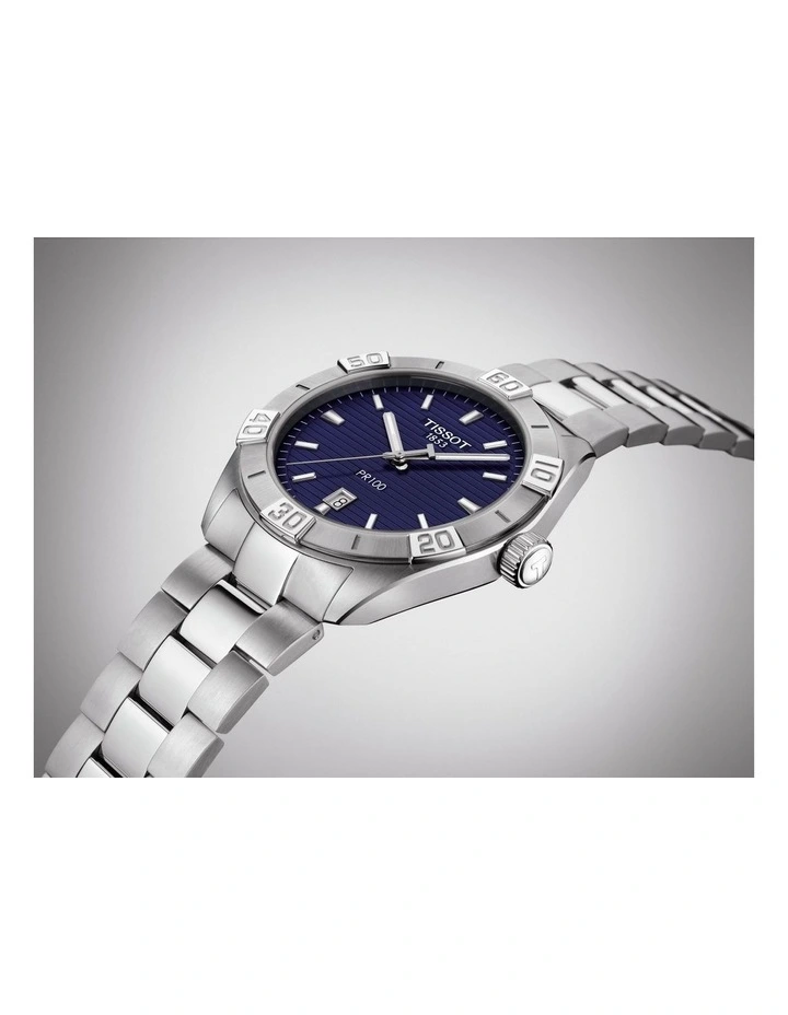 Both sporty and elegant, the Tissot PR 100 Sport Gent takes on a robust design with a bold bezel. The high-quality components of this men’s Swiss-made watch guarantees the best suitability for everyday use. With scratch-resistant sapphire crystal, a blue dial and a luminous coating on the hands and indices.