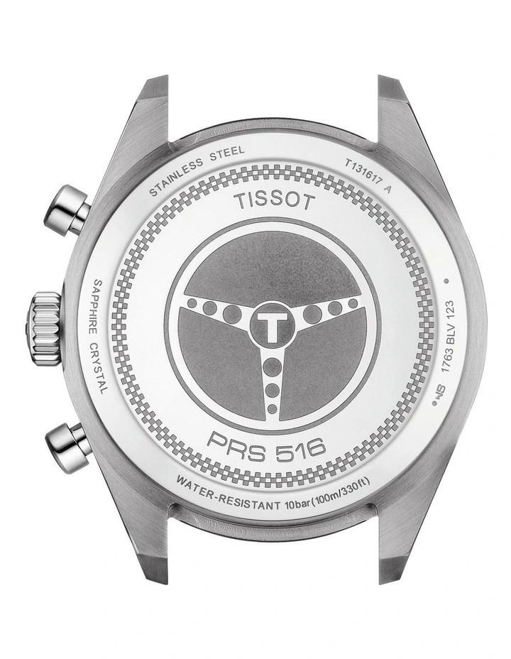 Designed to be precise, robust and sporty, this PRS 516 Chronograph is inspired by classic sports cars. A mens Swiss-made quartz watch with scratch-resistant sapphire crystal and tachymeter scale bezel. Features a blue dial and grey stainless steel bracelet.