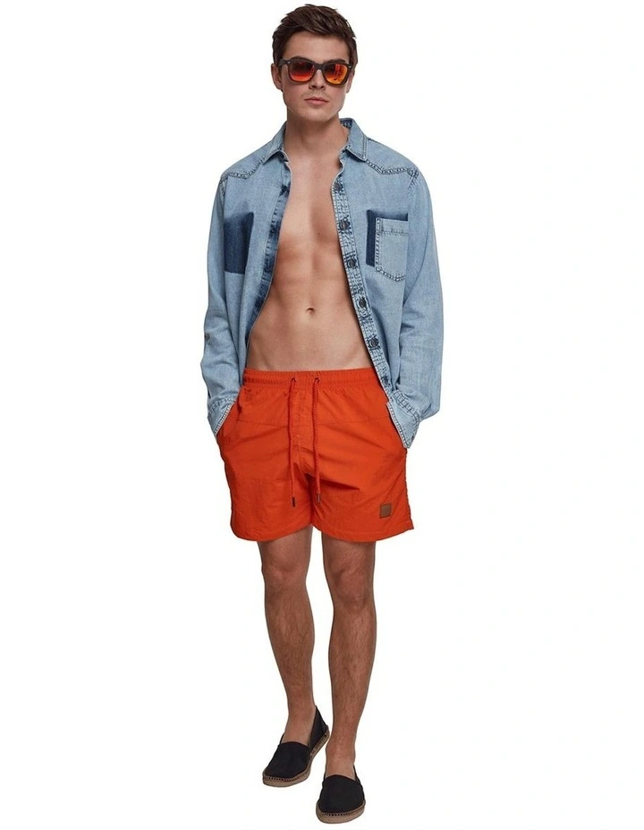 The Mens Block Swim Shorts are a versatile and lightweight summer staple. They have been designed to take you from swimming at the beach, to strolling through town. Their engineered blend of nylon and taslon creates a highly durable and quick-drying material, making these shorts the perfect option for on-the-go activities.