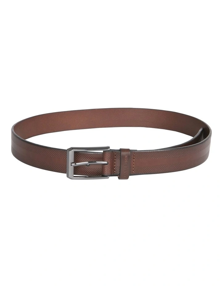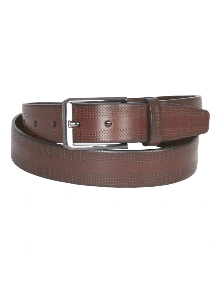 This genuine leather belt by Van Heusen has a subtle dot emboss edge stripe. This belt can be worn in both formal and casual settings.