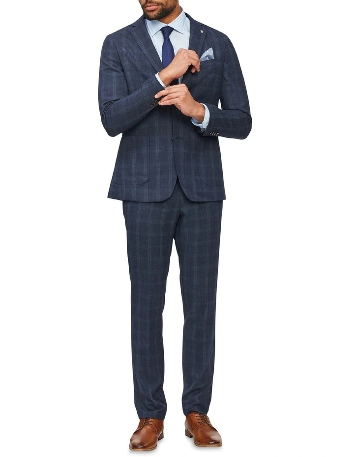 The Slim Double Side Check Suit Jacket Vintage Blue, constructed in the Van Heusen Slim Fit is our most contemporary fit. Perfect for those who like their pieces snug, tapering down through the waist and emphasising the chest, making for a sleek silhouette. Polished and stylish, this Suit jacket transitions effortlessly from office to special event. Pair with matching pants sold separately.