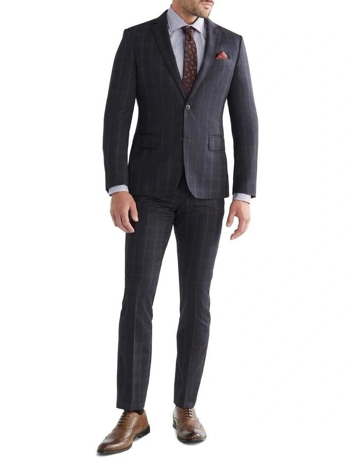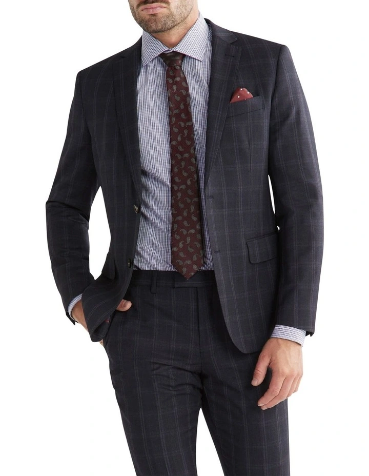 Calvin Klein is one of the leading fashion brands in the world with a modern, minimal and refined aesthetic. Quality fabrics and exceptional craftsmanship reinforce Calvin Klein business wear as a leader in their category. This sleek wool windowpane check suit jacket is made from a high quality Australian wool blend, which offers an elegant dapper look. The slim fit can be worn with or without a tie, making it the perfect addition to your business or special occasion wardrobe. It has internal security pockets for extra storage and an internal hanky holder that provides a soft touch during those long meetings.