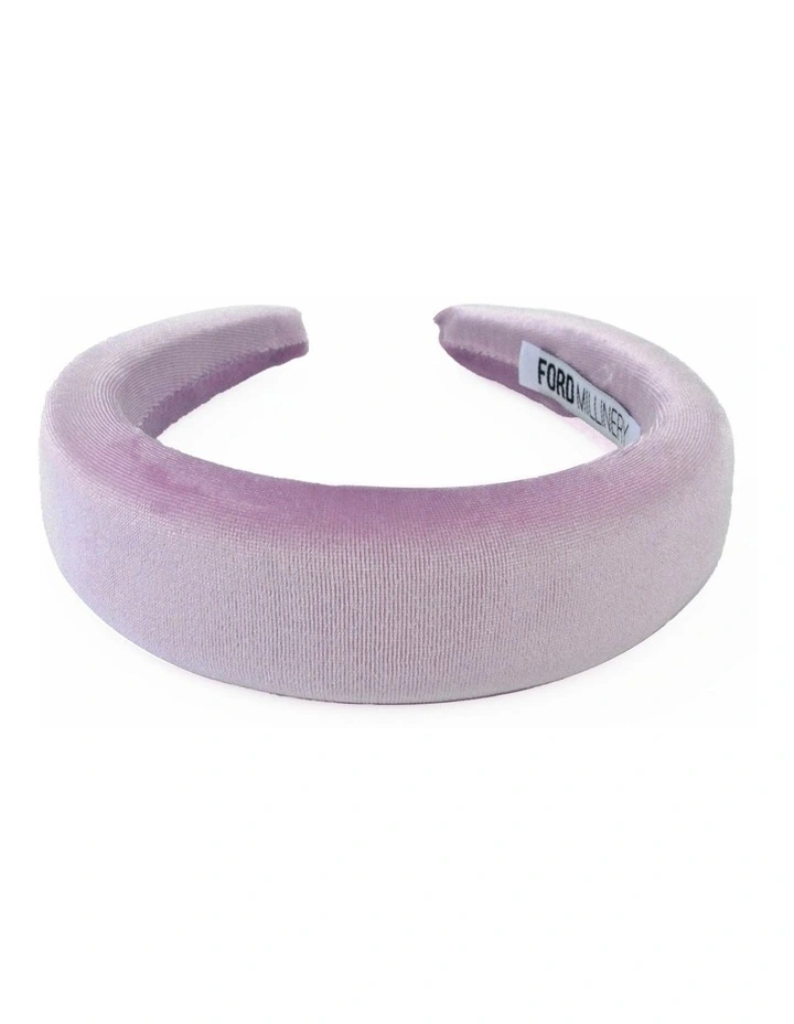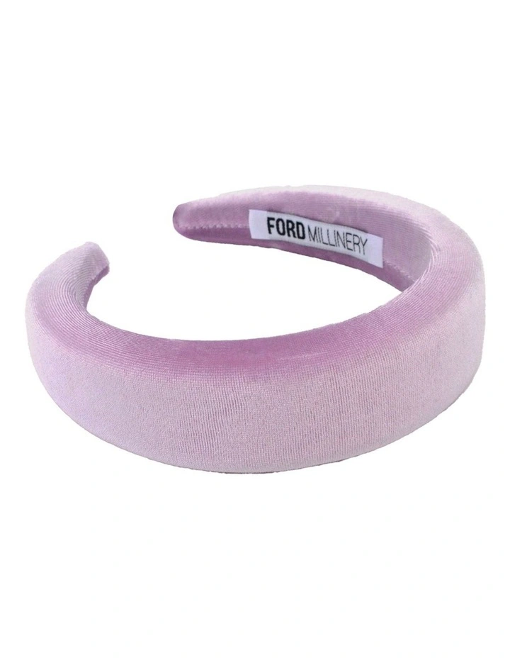 RACHEL by Ford Millinery is a gorgeous, padded headband that comes in peachy pink, light blue, and lilac. RACHEL is a twist on Ford Millinerys signature MONICA style headband, but instead of having rounded edges they are more rectangular and sharper. This gorgeous headband is on a padded base giving it height and is a perfect choice for these spring races.