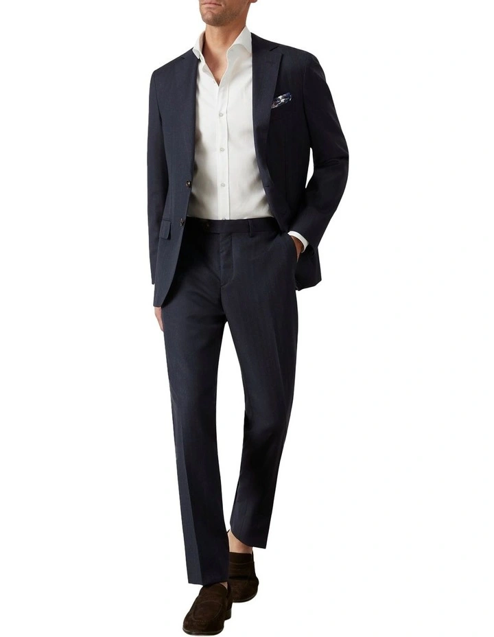 A trusty navy suit is always going to come in handy when it comes to dressing up for smart-casual to formal occasions. So, why not invest in a modern staple like our new Vernato Trouser. It’s designed for a Drop 7 regular fit and is crafted from 100% merino wool that’s woven in Italy by legendary textile studio, VBC.
