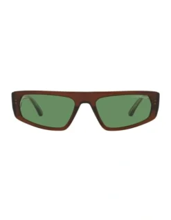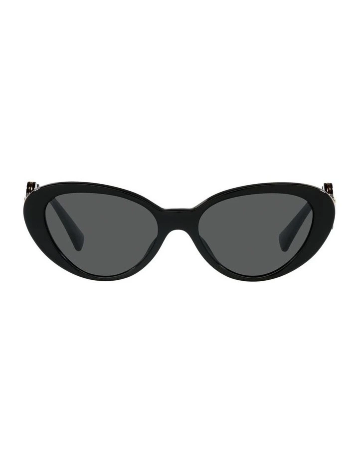 Two Medusa medallions exert their power in this retro-inspired frame. Temple adorned with two different-sized Medusa medallions for added hypnotic appeal. Feminine, retro acetate shape with full brand allure, featuring light violet & dark grey lenses. Universal fitting for a diversity of face shapes and sizes.