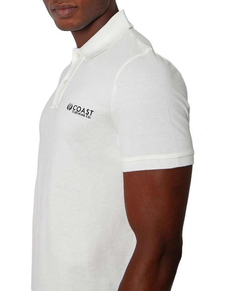 Get that holiday feeling going all year round with the Polo Shirt by Coast Clothing. This super cool Polo shirt is a modernized version of the all-time Polo favorite with a stylish design and on-trend Coast embroidery. Our model wears a size M. He usually takes a standard M and is 6″1′ (186cm) tall with a 41″ (104cm) chest and 32″ (81cm) waist. Features – Length: 72cm – Regular fit – 100% Cotton Piquet – Rib collar & Sleeve openings – Stylish elasticated Herringbone tape around inside collar – Branded buttons – Embroidered Coast branding Composition: 100% Cotton Cold machine wash. Low iron.