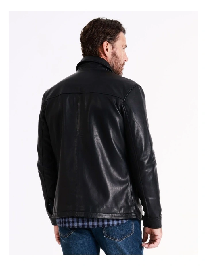 Reserve Whitehart Regular Collar Leather Jacket in Black