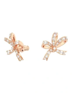 Swarovski Volta Stud Earrings Bow Small Rose Gold-Tone Plated In White