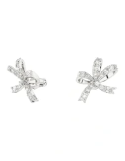 Swarovski Volta Stud Earrings Bow Small Rhodium Plated In White